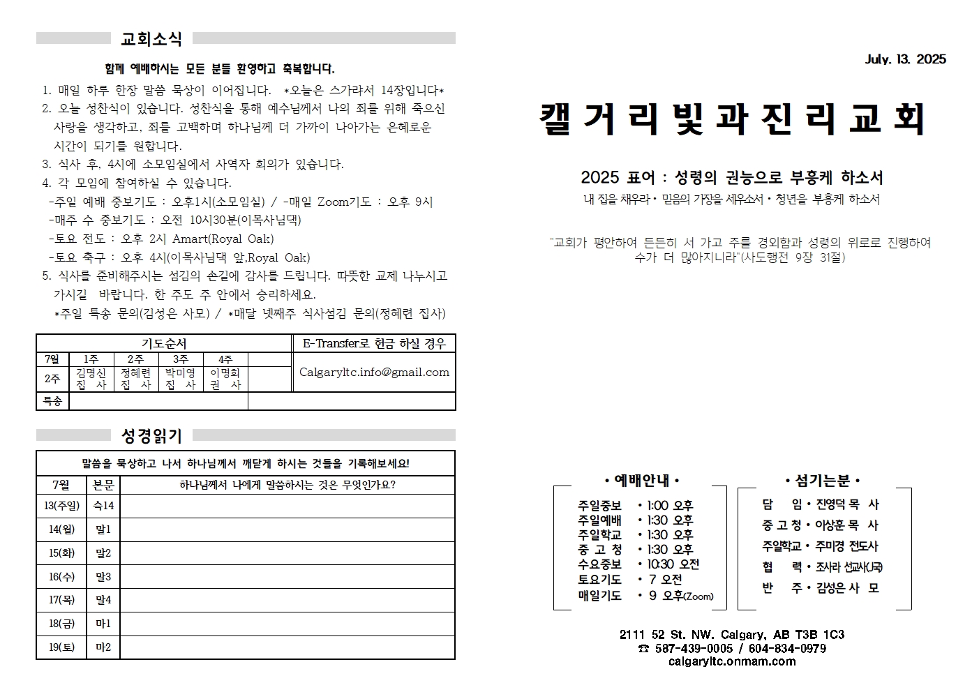 2025년 7월 13일 주일