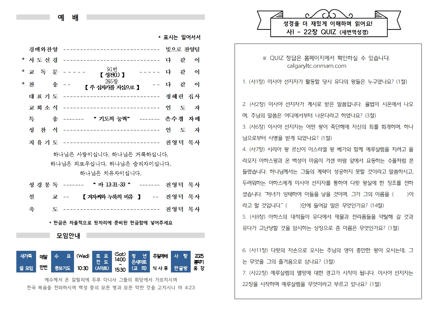 예배안내