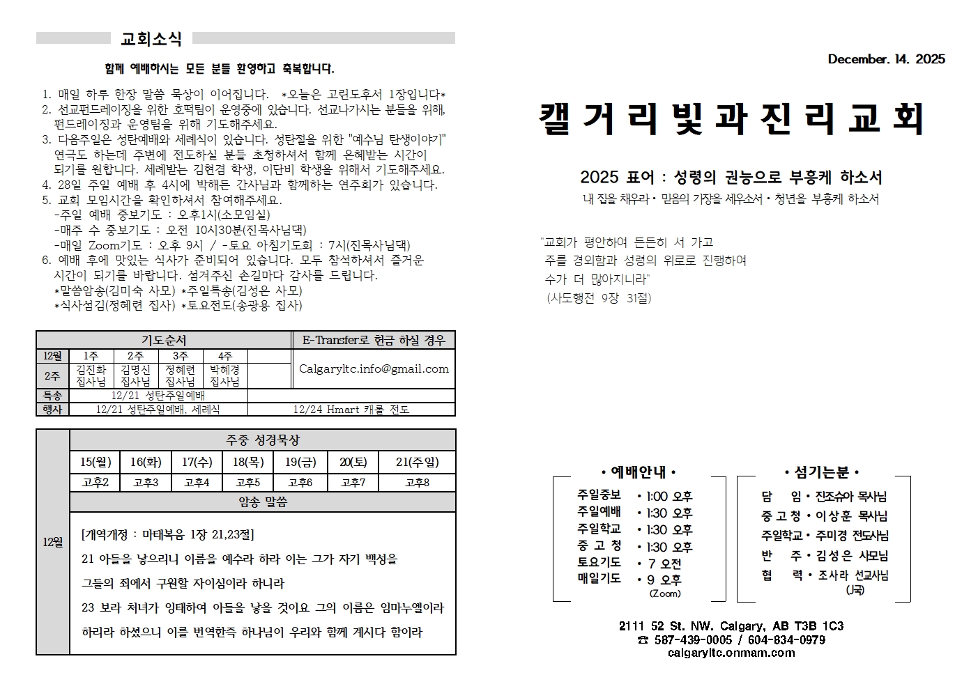 2025년 12월 14일 주일