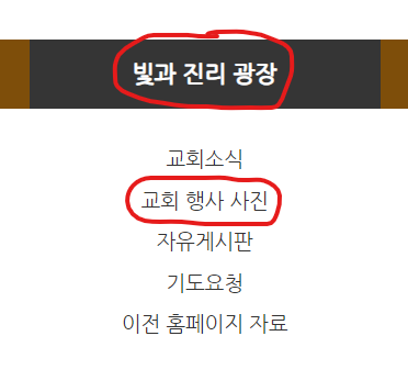 위 메뉴 "빛과 진리 광장" - "교회 행사 사진" 앞 쪽에 올려놨습니다.